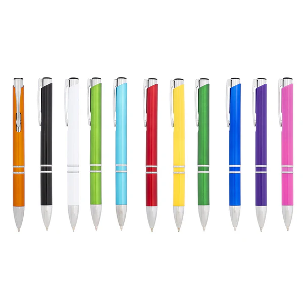 Ballpoint pen made from plastic with a lacquered finish, polished shine, and striking chrome details