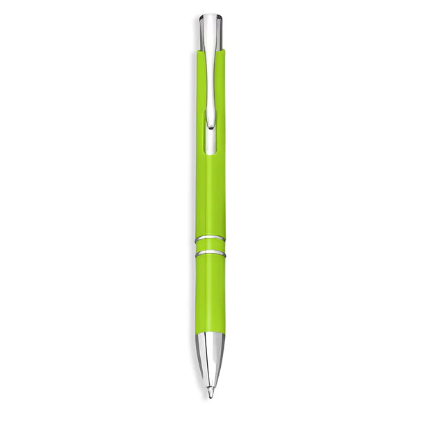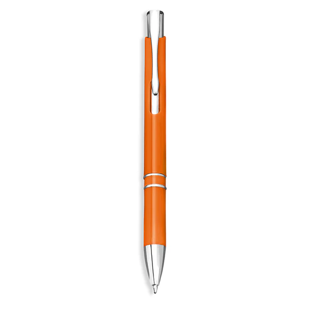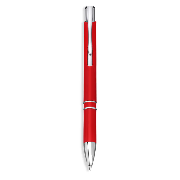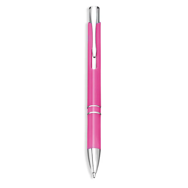 Ballpoint pen made from plastic with a lacquered finish, polished shine, and striking chrome details