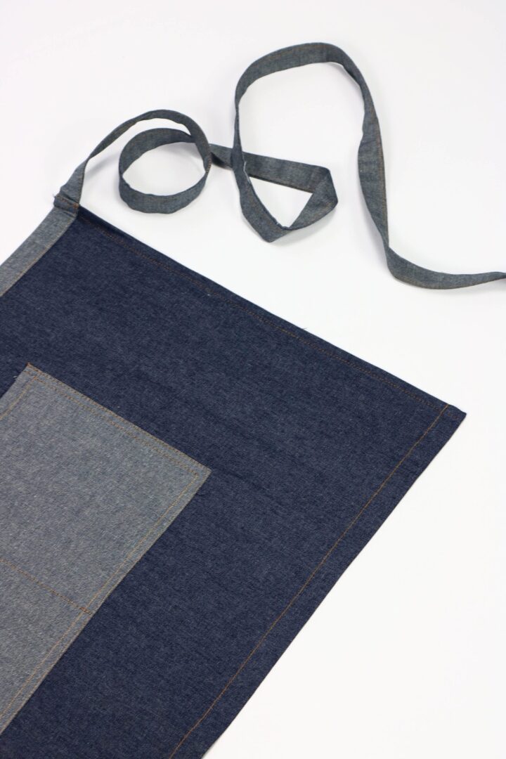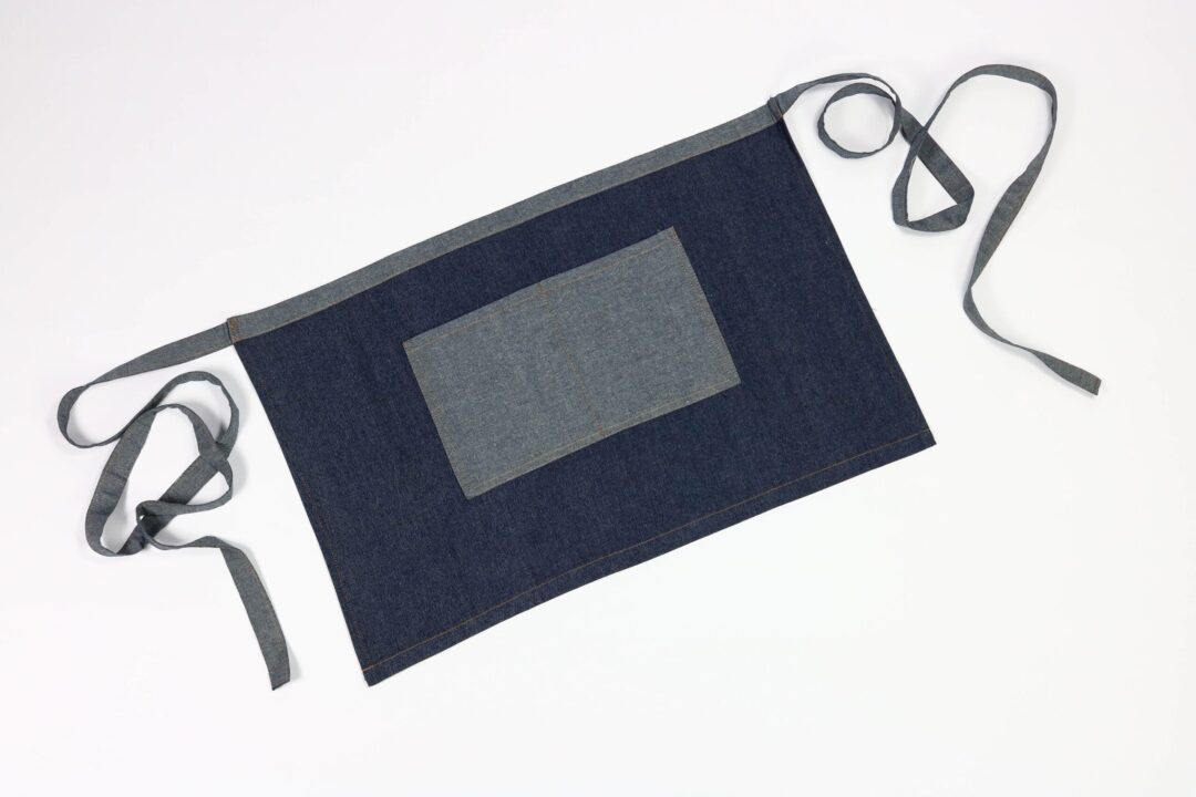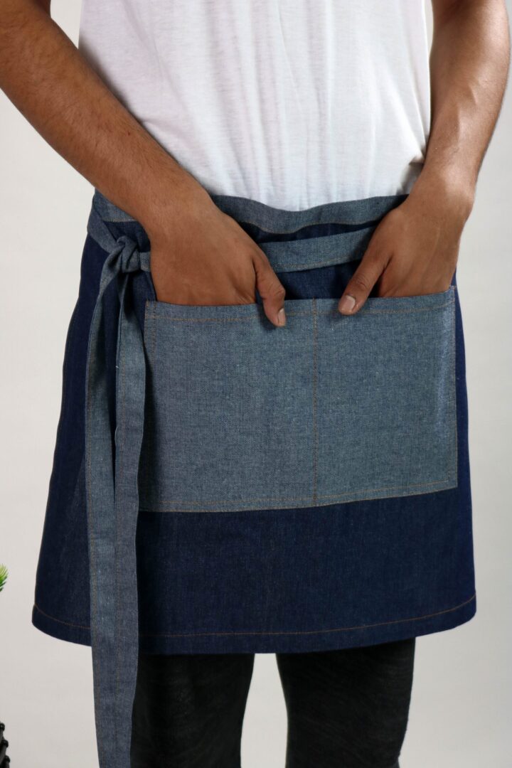 Keeping the modish look of denim with a soft and pliable feel, this 100% cotton apron is secured with stylish tacked pocket ends and reverse fabric ties and pockets. The Melville Half Bistro Apron also includes double front pockets for added functionality. The zippered hip pocket provides not only added storage but a secure spot for valuables. Pocket holds iPad2 or similar device.  The Melville Bib Apron is available in  indigo blue. We use a lightweight 6oz cotton blend denim that meets all the requirements of  comfort and durability.